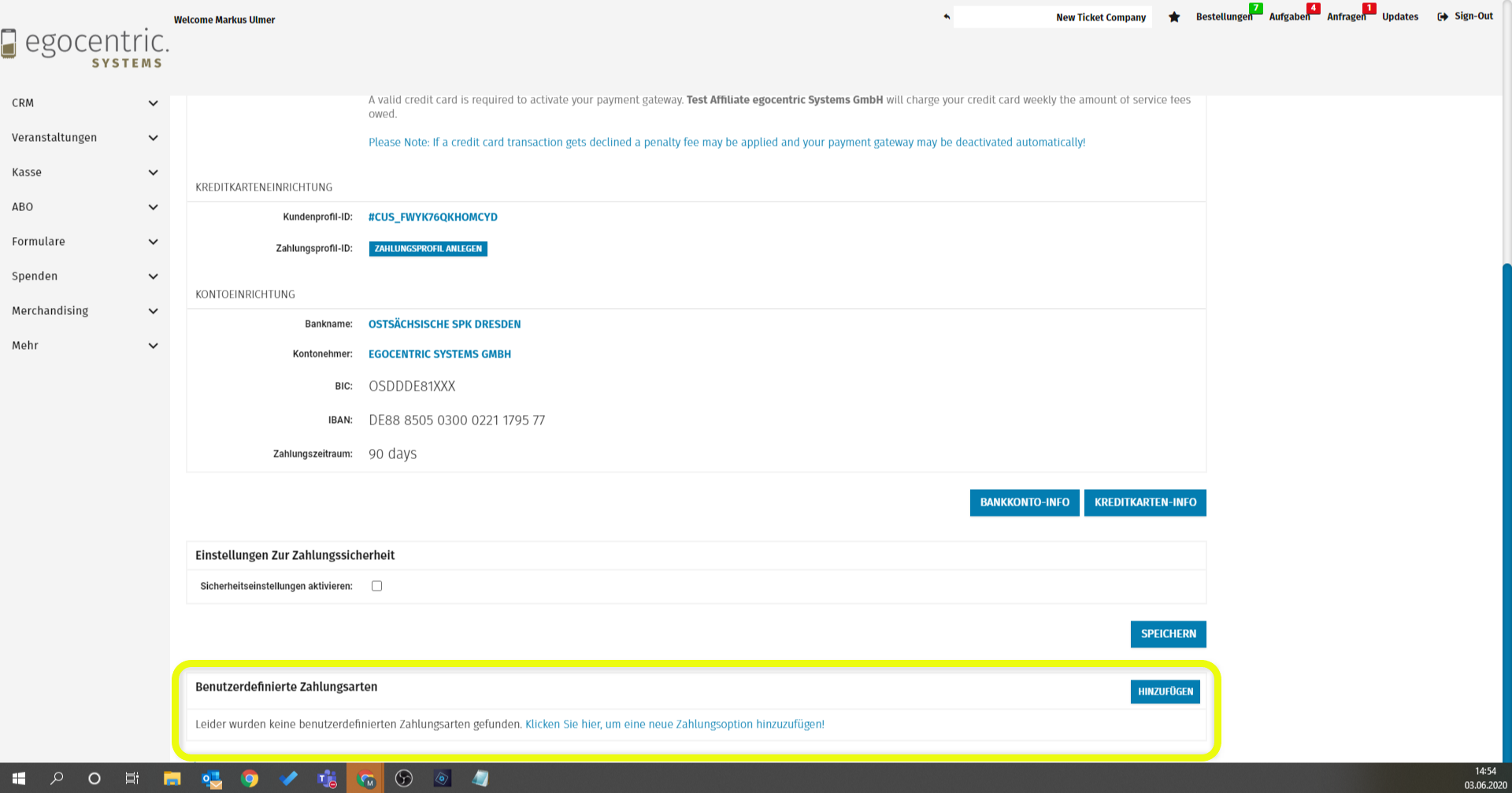 - Benutzerdefinierte Zahlungsarten im Eventmanager einrichten.